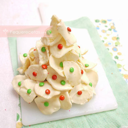 - Cubrir las patatas fritas con la mezcla de chocolate blanco y dejar secar a temperatura ambiente.