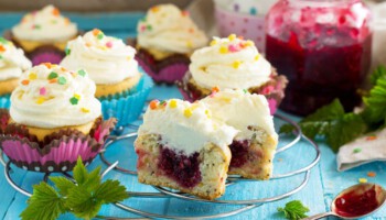 Otros muffins o magdalenas perfectos para San Valentín, en este caso con un corazón de mermelada de fresa que los convierte en un bocado delicioso… No os perdáis la receta:
