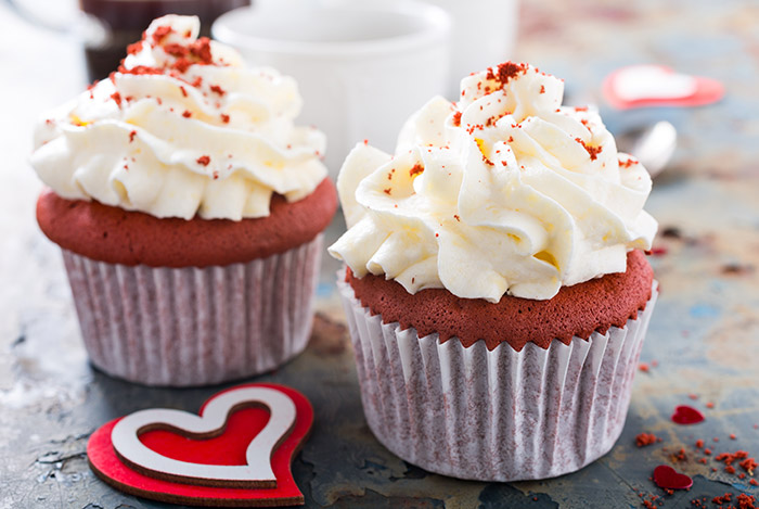 La famosa tarta Red Velvet se puede convertir en unos deliciosos y muy bonitos cupcakes red velvet, perfectos como dulce para San Valentín.