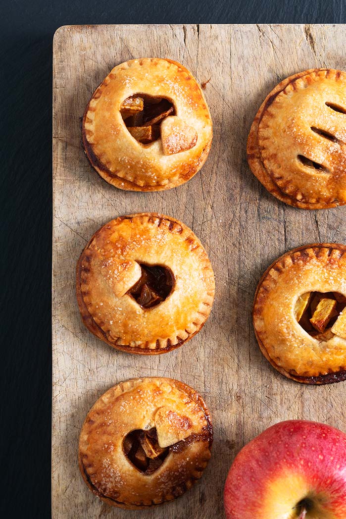 ¿Os gusta el Apple Pie o tarta de manzana americana? Pues usando unos cortadores circulares (o por ejemplo un vaso) y haciéndoles una ventanita en forma de corazón (con un cortador como este) podemos hacer tartaletas individuales tan bonitas como estas.