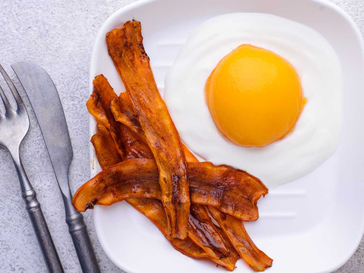 Postre trampantojo de huevo frito con bacon de zanahoria