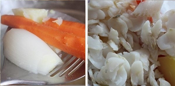 - Las ponemos a cocer en agua junto con las pescadillas hasta que las patatas estén cocidas.