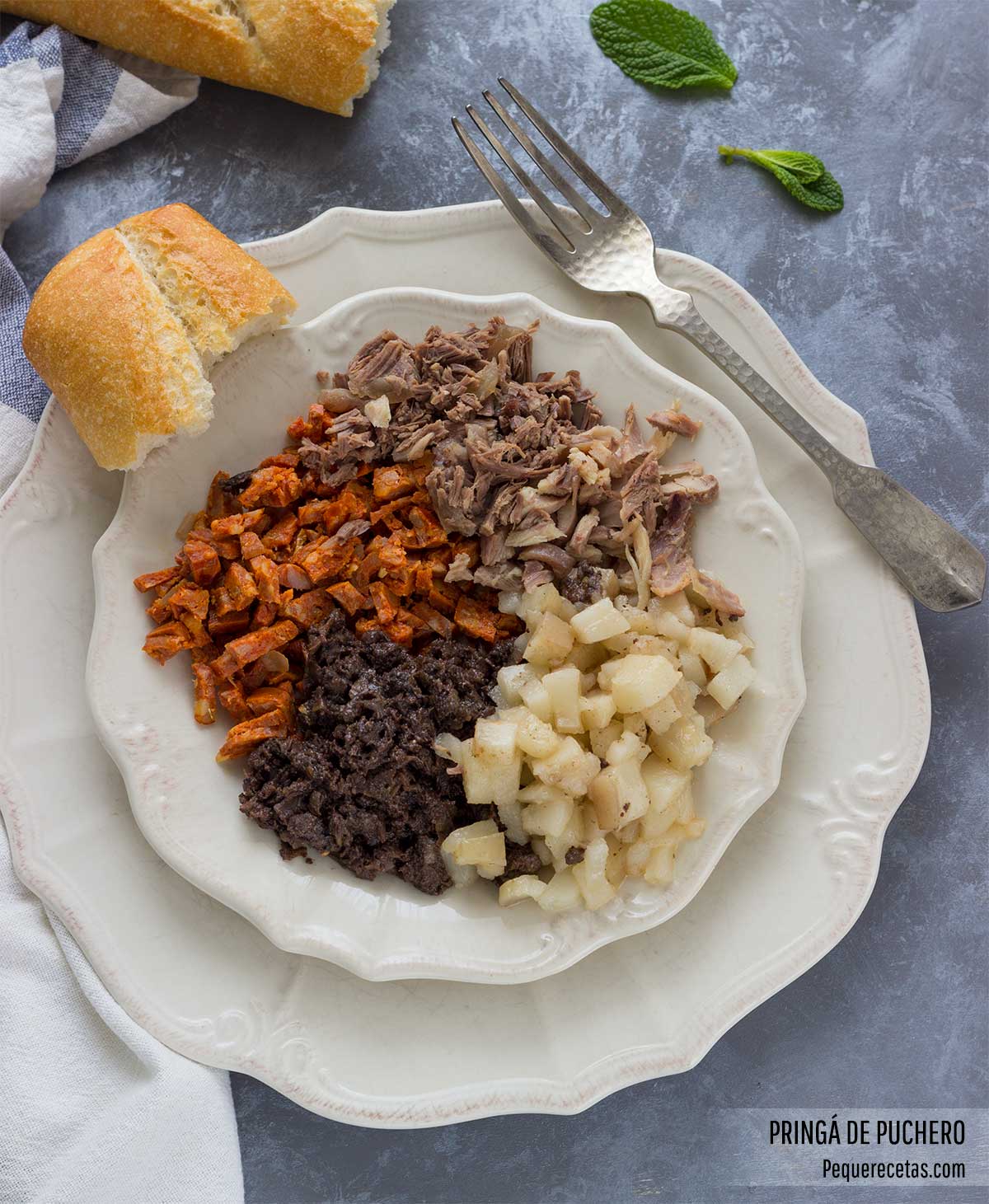 A mi la forma de presentar la carne del puchero en forma de pringá, con todas las carnes picadas y mezcladas, siempre me ha gustado, porque me da la sensación que se aprovechan más las carnes como el morcillo o el pollo, que de otra forma quedan más relegadas.