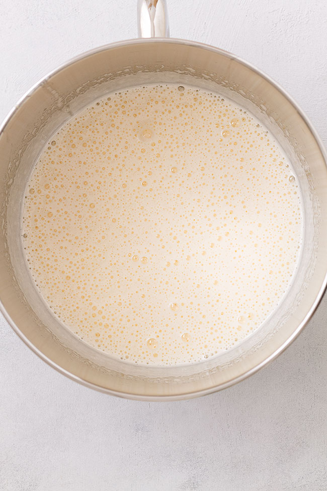 “Batimos los 4 huevos junto al azúcar hasta que la mezcla quede blanquecina y el azúcar se disuelva, e incorporamos esta mezcla a la leche aromatizada, que habremos colado previamente.”
