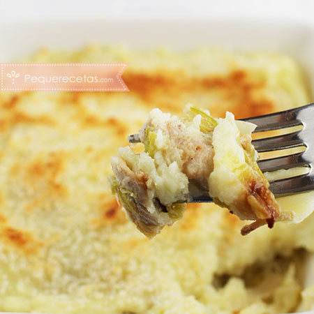 Pastel de patata y pollo con puerro