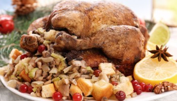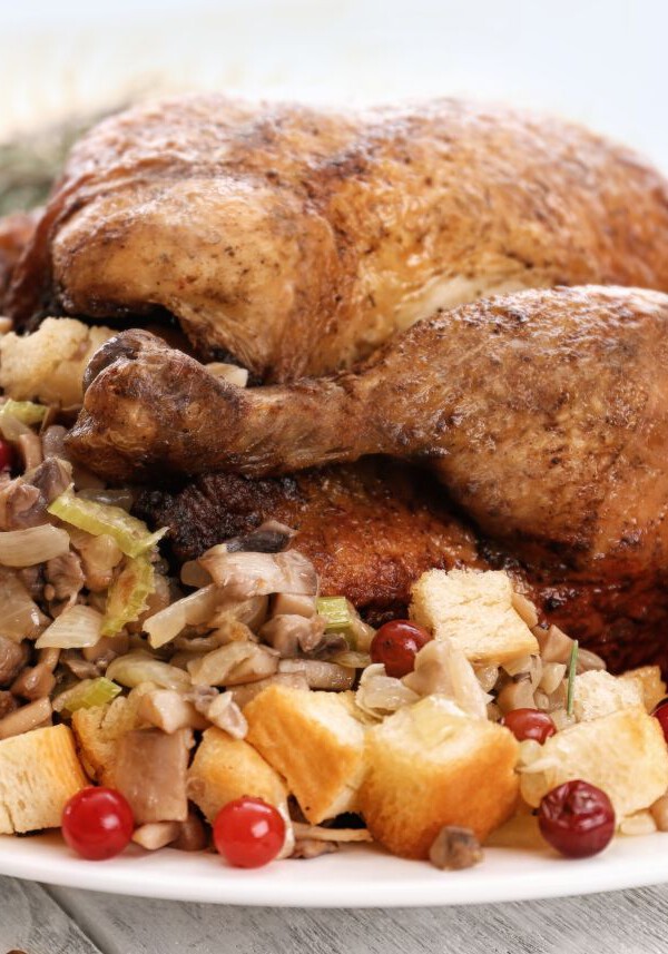 Pularda rellena de higos y pistachos al horno (receta navideña)