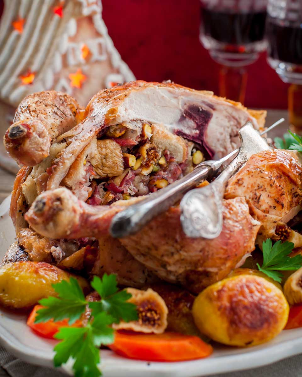 Las aves rellenas están entre los platos navideños más populares, desde el pollo relleno al capón relleno hasta esta estupenda pularda rellena de higos y pistachos que prepararemos hoy.