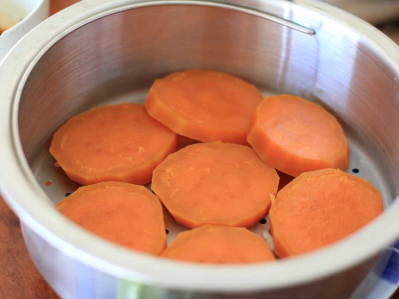 - Combina con otros vegetales: Puedes mezclar el boniato con otras verduras como zanahorias o calabaza para darle más variedad de sabores. Simplemente cocínalos juntos y sigue el mismo proceso para hacer el puré.