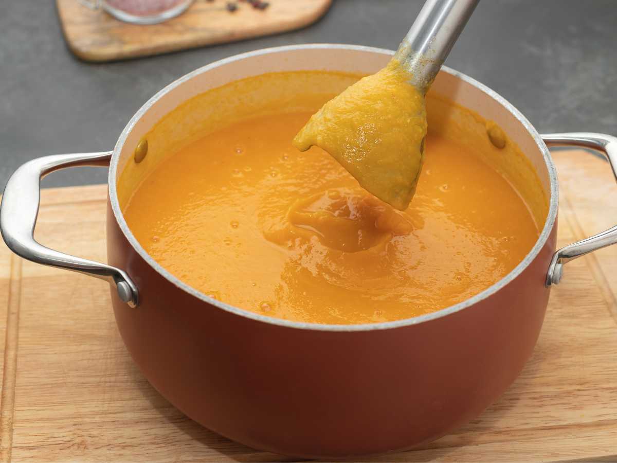 - Reduce el fuego y deja que se cocine a fuego lento durante 20-25 minutos, o hasta que la calabaza esté tierna.