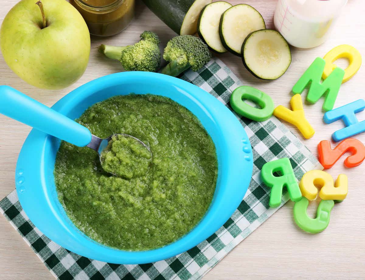 pure de brocoli calabacin y manzana para bebés