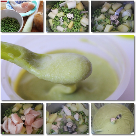 Puré de guisantes y pollo