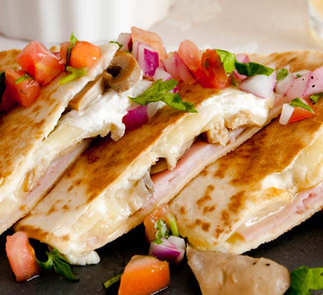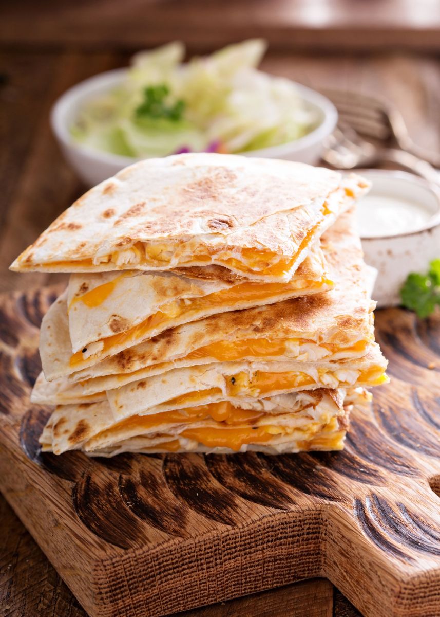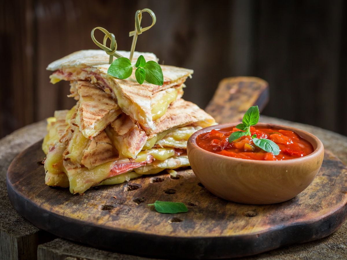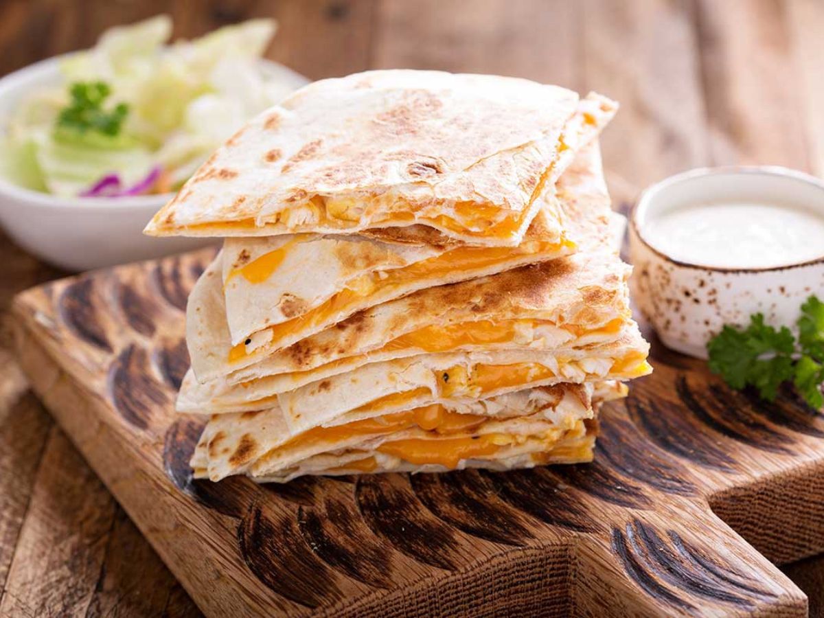 Las quesadillas mexicanas son uno de los platos más famosos de la gastronomía de este país, a la par de los burritos, las fajitas y los nachos. La quesadilla es una especie de bocadillo de tortilla de maíz o de trigo, cuyo ingrediente principal es el queso, acompañado de muchos otros como el pollo, el jamón, los champiñones, la carne, etc. Incluso en algunas zonas de México pueden encontrarse también sin queso.