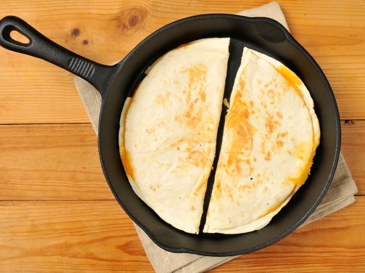 Una quesadilla se hace con una tortilla doblada a la mitad, con los ingredientes de relleno puestos dentro; cuando se usan dos tortillas, con el relleno en medio como si fuera un bocadillo, se llaman sincronizadas. Como veis, son ideales para preparar una cena rápida, por lo que os aconsejamos tener siempre unas tortillas en casa porque os salvarán la cena en más de una ocasión.