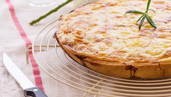 La quiche es una tarta salada cuyo origen es Francia. En todas las variedades la base es la misma, la masa quebrada o masa brisa. El relleno se hace con huevos batidos y nata líquida o crema de leche espesa, y a partir de ahí se añaden diferentes ingredientes: jamón y queso, calabacín, verduras, etc… Una vez añadida la mezcla se lleva al horno hasta que todo el conjunto cuaja y queda dorado.