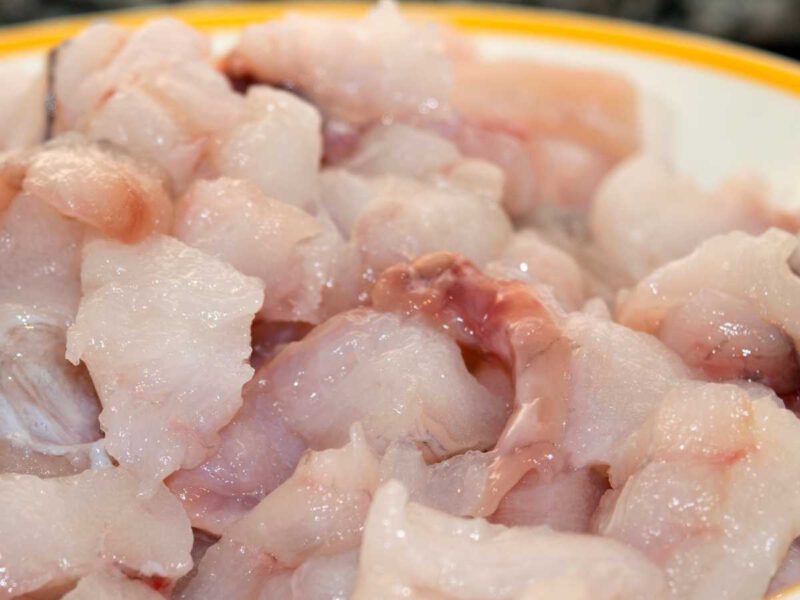 - Cortamos el rape en cuadraditos del tamaño de un bocado.