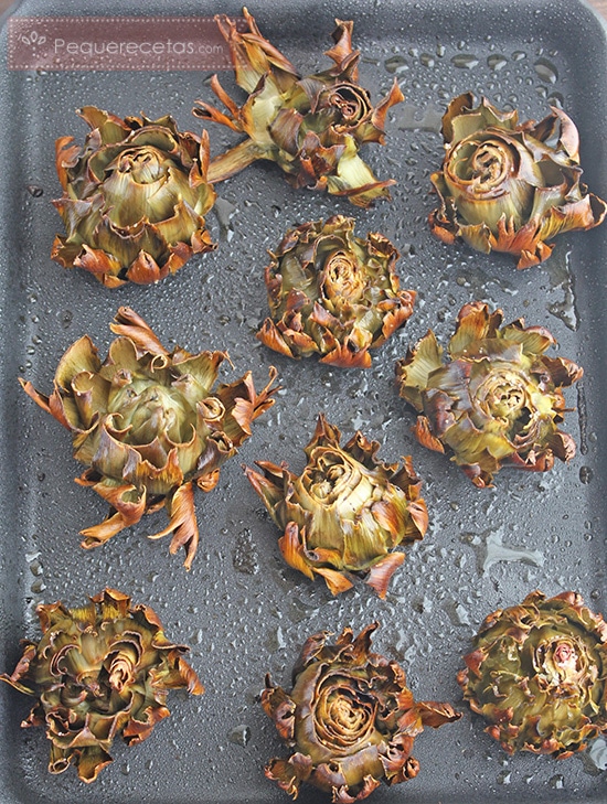 Ingredientes (4 personas): 12 alcachofas; sal; pimienta; aceite de oliva virgen extra