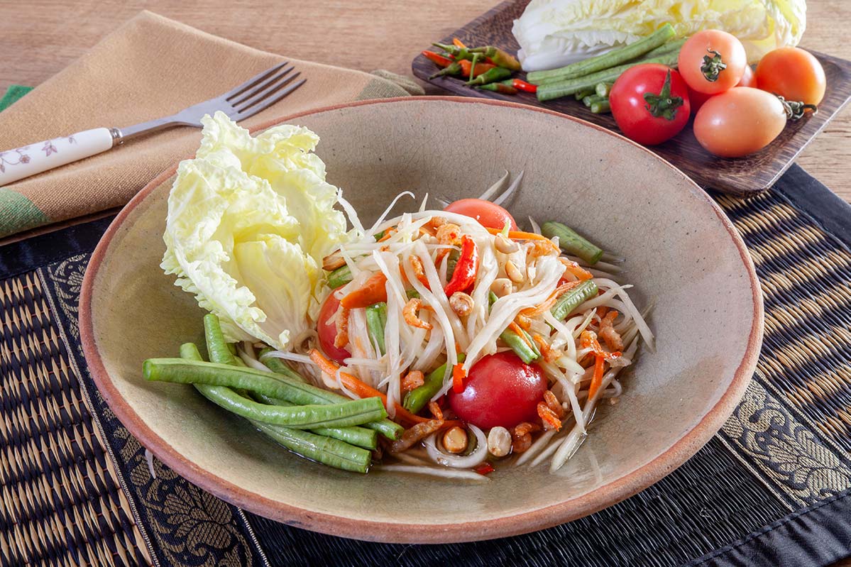 Ensalada tailandesa Som Tum de papaya picante