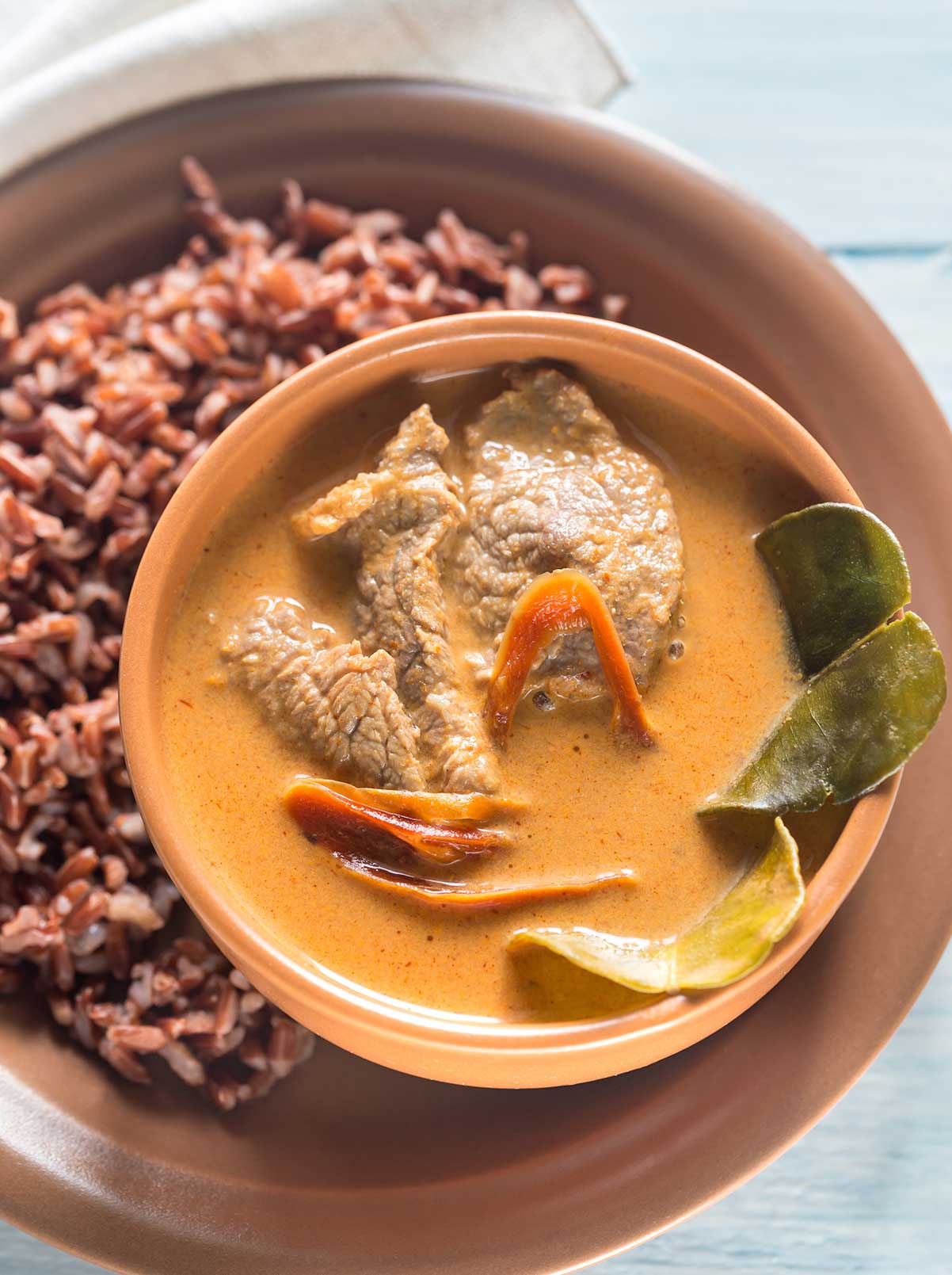 El Panang Curry o Curry Panang es otro esfofado a base de carne y especias. Vale la pena recordar que “curry” es la palabra que usamos en Occidente para describir los platos de la cocina asiática elaborados con una mezcla de especias. El Panang Curry se prepara con curry rojo en pasta (pasta de curry Panaeng), que se puede comprar en tiendas de productos asiáticos, y se elabora con cacahuetes, cilantro, comino, ajo y otras especias. Es un plato picante, pero su intensidad se puede regular poniendo más o menos pasta de curry.