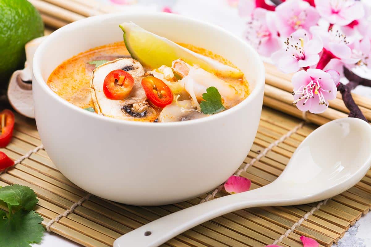 Sopa Thai Tom Kha Kai de pollo con leche de coco