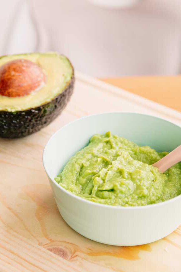 Desde esta etapa, puedes comenzar con recetas muy sencillas de puré de aguacate para alimentar al bebé con una cuchara.