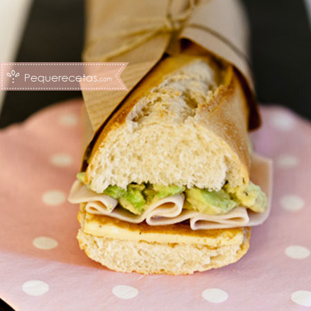 Bocadillo de tortilla, aguacate y pechuga de pavo