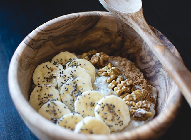 Otra forma fácil de incorporar las semillas de chía a tu dieta habitual es en el desayuno. Disfruta de unas saludables gachas de avena con plátano y nueces, e incorpora las semillas de chía espolvoreadas por encima ¡fácil y muy saludable!