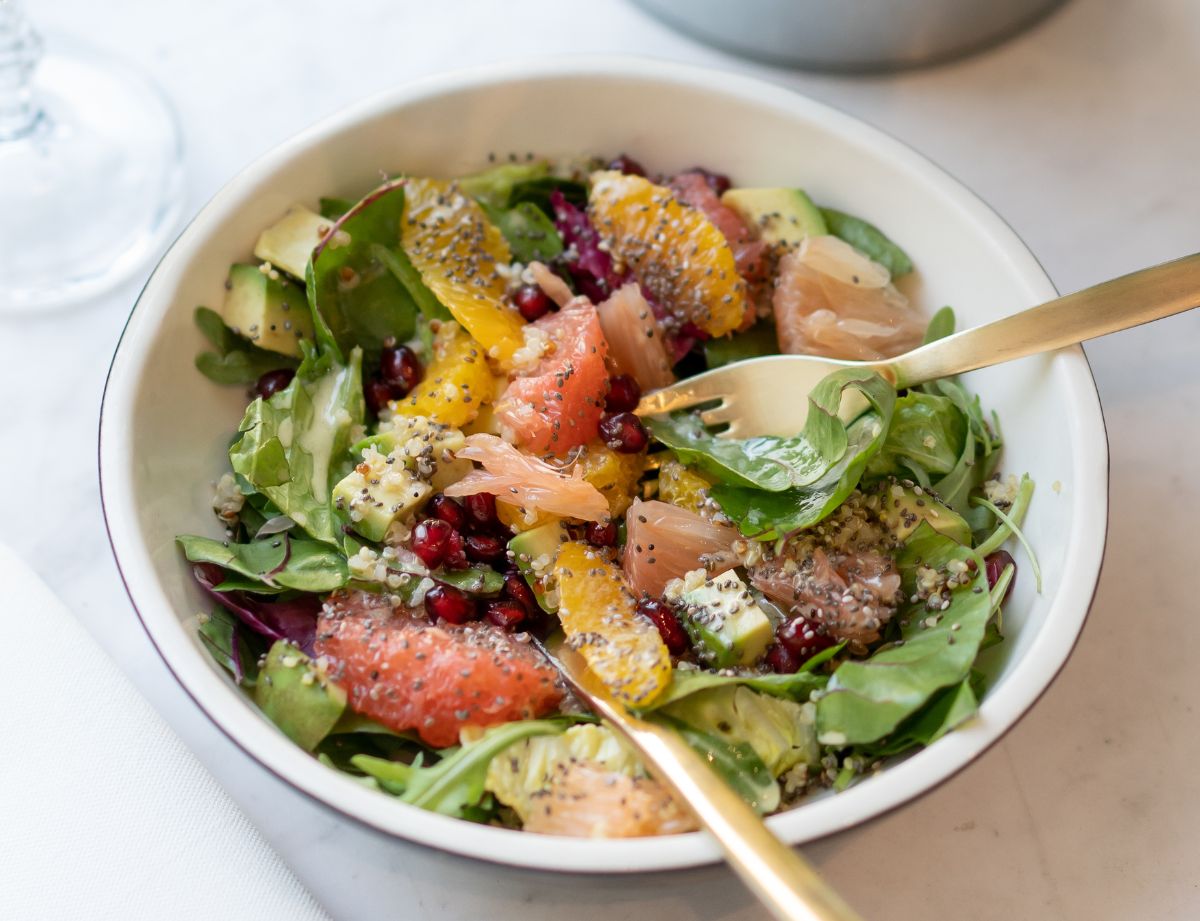 Preparación: En esta refrescante ensalada, combinaremos los sabores cítricos con la textura gelatinosa de las semillas de chía y la quinoa. En un recipiente, mezcla la quinoa cocida con las semillas de chía y deja reposar durante 10 minutos para que las semillas absorban líquido. Mientras tanto, lava y corta las hojas de lechuga y colócalas en un plato o ensaladera. Agrega el aguacate en cubitos, los gajos de pomelo y naranja, y los granos de granada. Luego, añade la mezcla de quinoa y chía sobre la lechuga y los ingredientes de la ensalada. Aliña con jugo de limón, un chorrito de aceite de oliva, sal y pimienta al gusto. Mezcla suavemente para combinar todos los sabores y disfruta de esta colorida y nutritiva ensalada de chía, quinoa y cítricos.