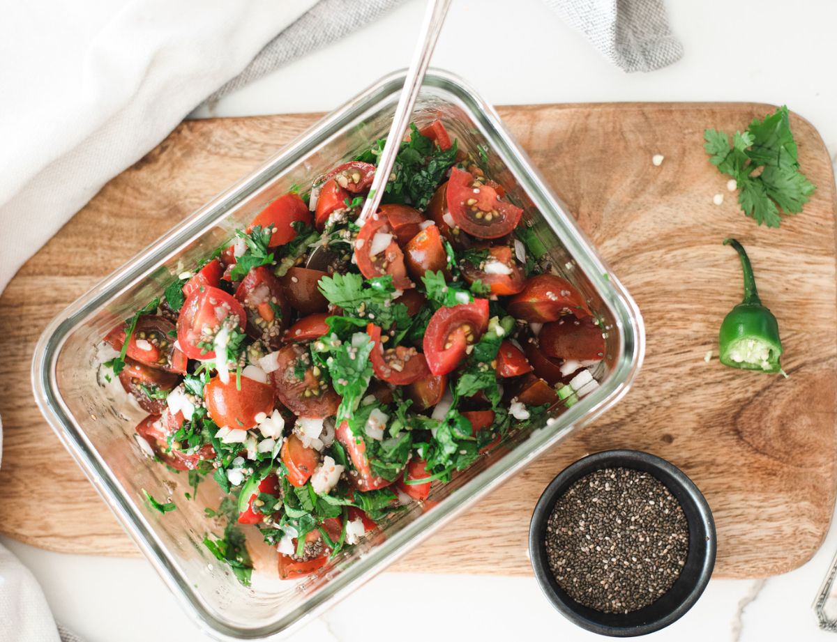 Deja reposar el pico de gallo en el refrigerador durante al menos 30 minutos para que los sabores se mezclen y las semillas de chía se hidraten. Las semillas de chía agregarán un toque de textura y nutrición a la salsa.