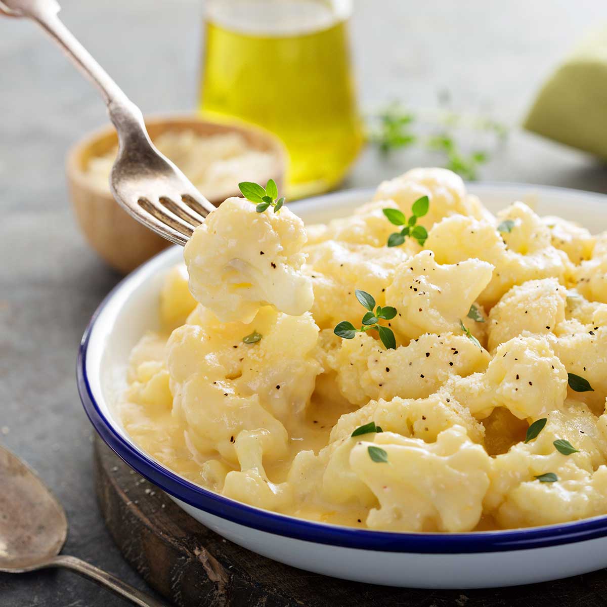 Otra idea en la que un sabor favorito de los peques se utiliza para camuflar las verduras es esta coliflor con salsa de queso. Si a tus peques les gustan los tradicionales macarrones con queso o Mac and Cheese americanos, esta receta seguro que les gusta.