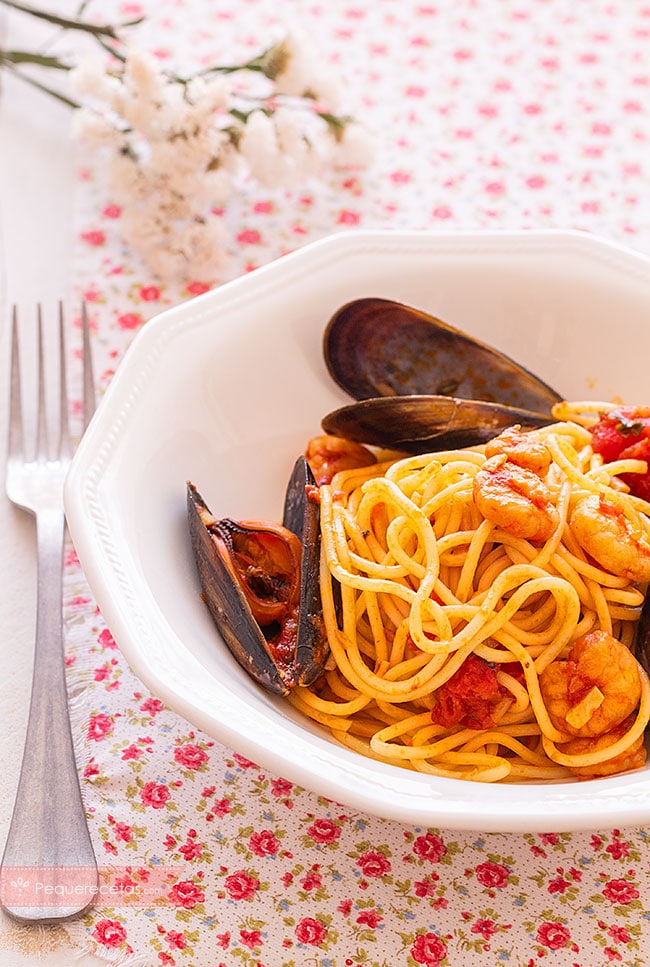 Los espaguetis a la marinera están llenos de sabor. Se preparan con diferentes tipos de marisco, entre los que se encuentran las gambas. Mira la receta paso a paso: