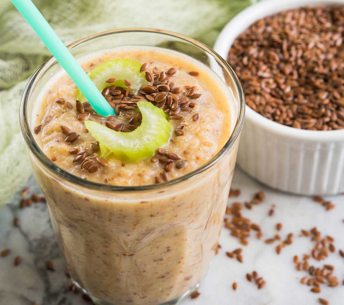 Preparación: Lavamos bien todos los ingredientes, troceamos e introducimos en la licuadora. Si queremos además añadir semillas de lino lo ideal es ponerlas a remojo en agua la noche anterior para digerirlas mejor.