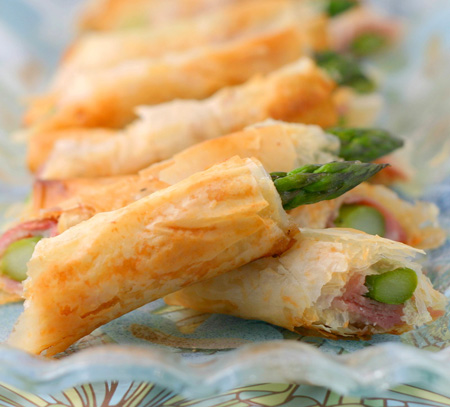 Espárragos con jamón envueltos en pasta filo