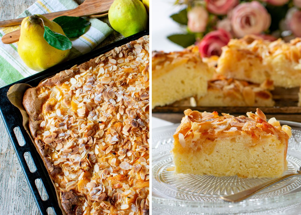 Bizcocho de membrillo con almendras laminadas