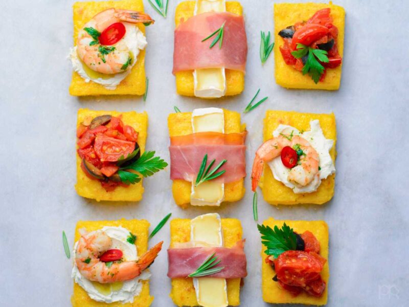 Canapés de polenta con diferentes toppings