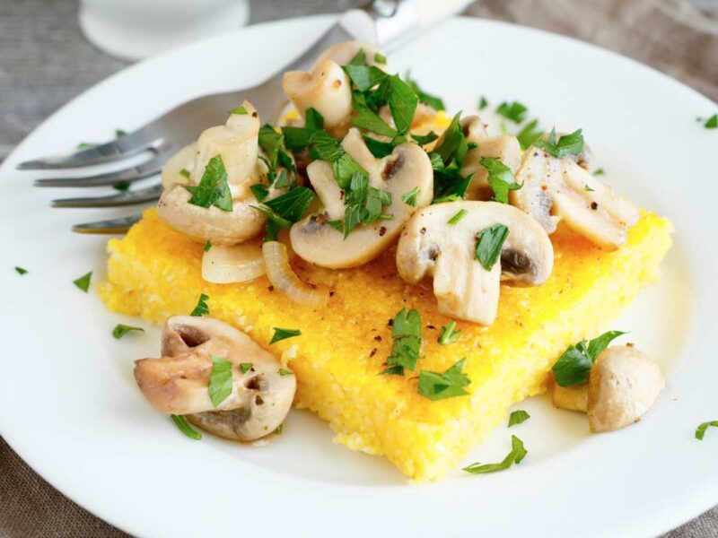 Polenta con champiñones salteados