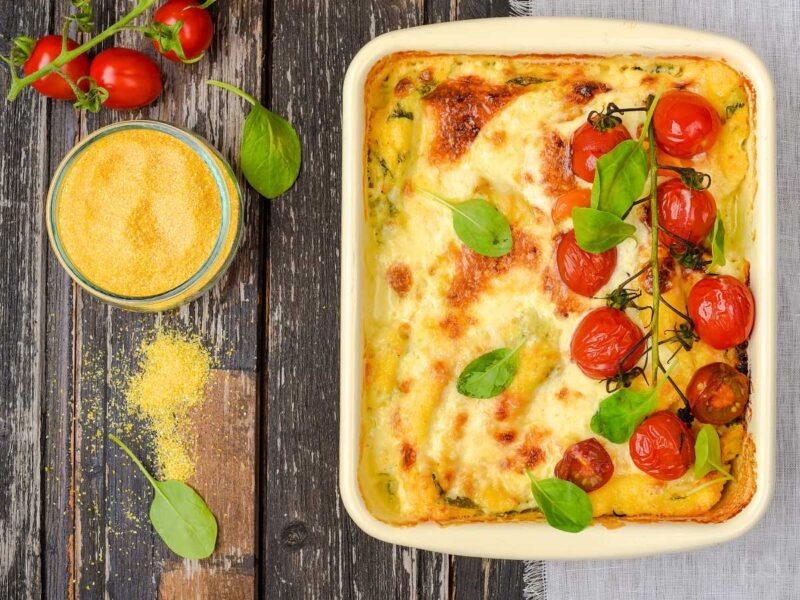 Polenta con queso y tomate gratinada al horno