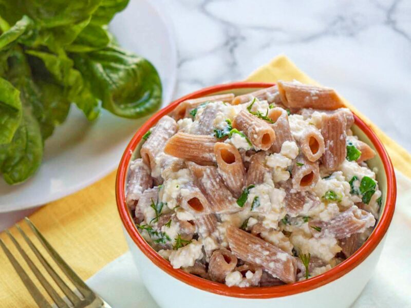 Si te apetece un plato de pasta cremoso, saludable y lleno de sabor, esta pasta integral con salsa de queso cottage y espinacas es una opción perfecta. Es más ligera que las versiones con nata o quesos grasos, pero igual de deliciosa. Además, aporta proteínas, fibra y calcio, ideal para una comida equilibrada.