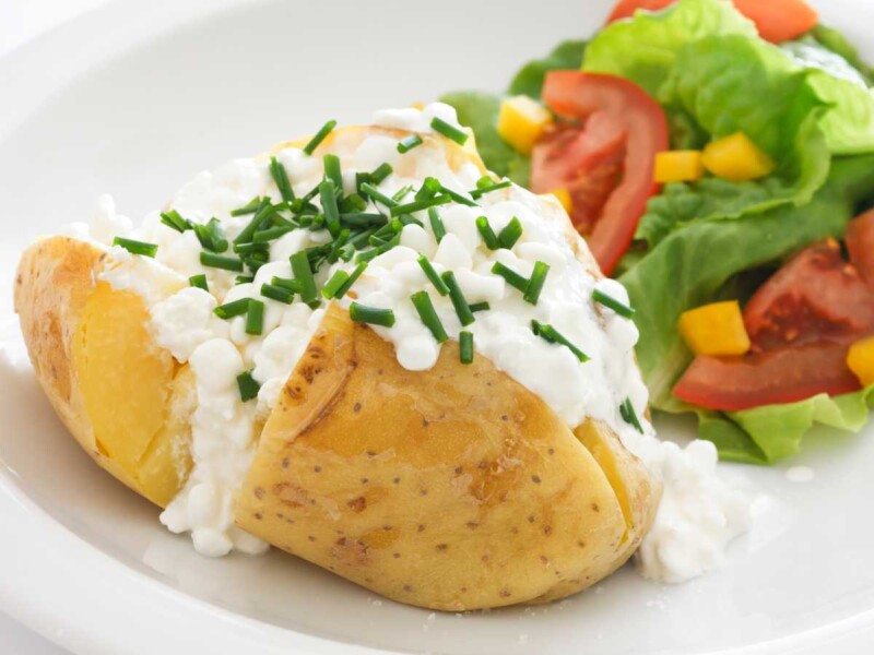 Si te gustan las patatas asadas pero quieres una versión más ligera y rica en proteínas, esta receta de patatas rellenas de queso cottage es perfecta. Son cremosas por dentro, crujientes por fuera y muy fáciles de hacer. Además, puedes personalizarlas con diferentes especias o ingredientes adicionales según tu gusto.