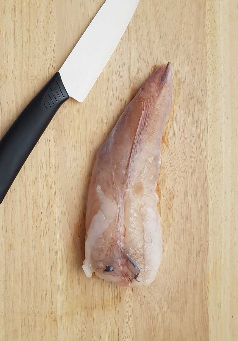 Si tenemos la cola de rape entera, vamos a quitarle la espina central de manera muy sencilla, para poder utilizarla luego en cualquiera de estas recetas con rape.