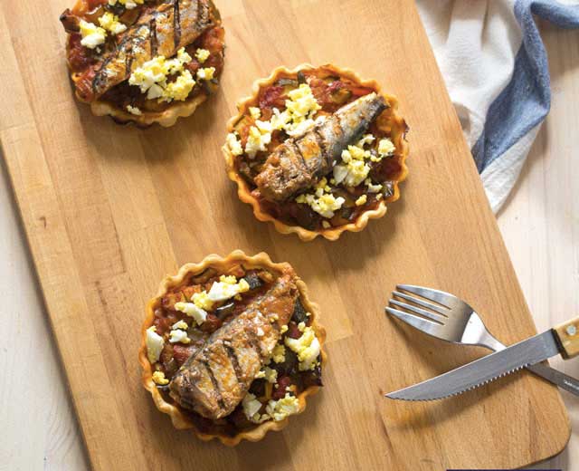 Tartitas de hojaldre rellenas de sardinas con pisto