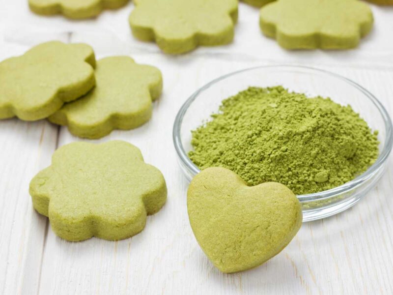 Ingredientes: 250 g de harina; 150 g de mantequilla a temperatura ambiente; 80 g de azúcar glas; 10 g de té matcha en polvo; 5 g de esencia de vainilla; una pizca de sal.