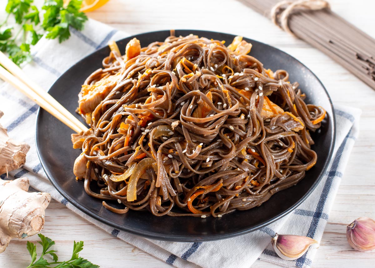 Los fideos soba japoneses son una especialidad culinaria de Japón, elaborados principalmente a partir de harina de trigo sarraceno o una mezcla de harina de trigo sarraceno y harina de trigo común. Estos fideos son delgados, largos y de color marrón claro, y se sirven fríos o calientes en una variedad de platos japoneses tradicionales.