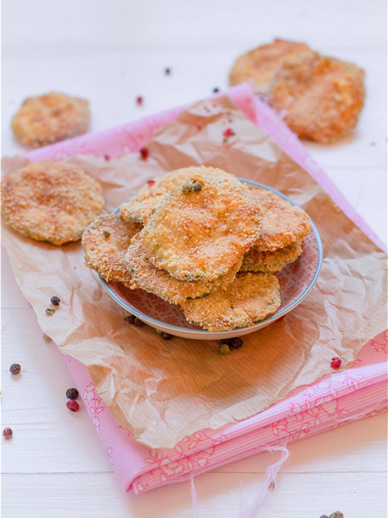 ¿Has probado alguna vez estos chips de calabacín rebozado? Puedes prepararlos al horno o en la freidora de aire, y los peques se los comerán como si fueran patatas fritas: