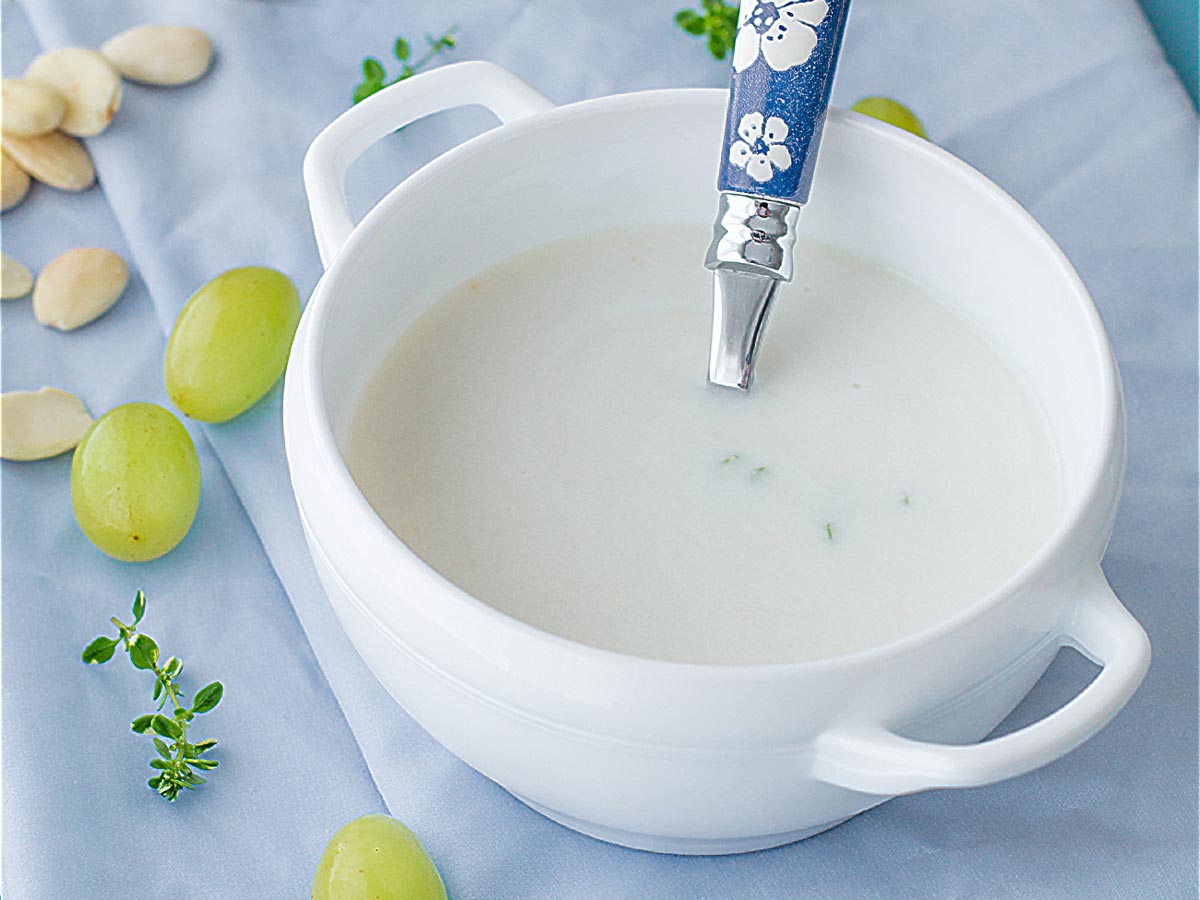 Aunque no lleva tomate, el ajoblanco es un tipo de gazpacho hecho con almendras molidas, ajo, pan blanco, aceite de oliva y a veces uvas o melón. Es cremoso, suave y una excelente opción para los que prefieren sabores más suaves.