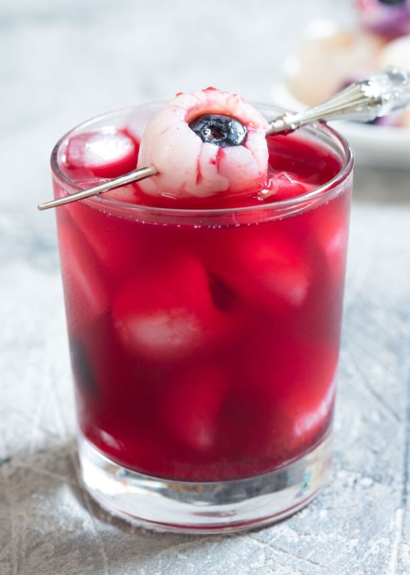 Este cóctel es para los que no se andan con bromas en Halloween. Con un color rojo intenso y un “ojo” flotando que parece estarte vigilando, esta bebida es perfecta para quienes buscan darle un toque macabro a la noche. ¡Un sorbo y te garantizo que sentirás el espíritu de Halloween con estilo adulto!