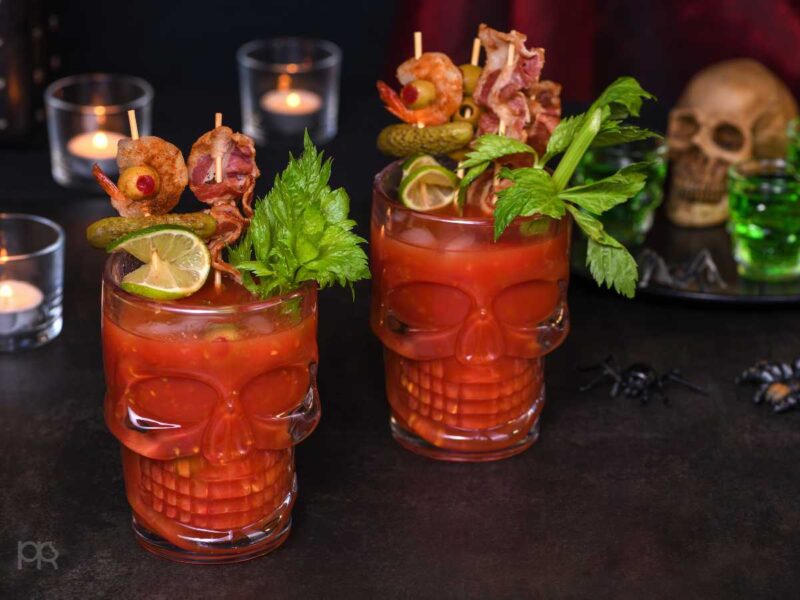Y no hay Halloween que se precie sin un buen Bloody Mary, uno de los cócteles más famosos y perfectos para este día. Es esencial que utilices algún vaso o copa siniestro, como estos vasos de calavera: