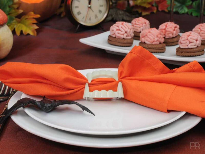 - Decoración de la mesa: Usa manteles y servilletas de colores oscuros o con estampados de Halloween. Incorpora pequeños detalles como telarañas falsas, arañas de plástico, calabazas y velas para un ambiente espeluznante. Platos y cubiertos negros o con motivos de Halloween realzarán la presentación de los aperitivos.