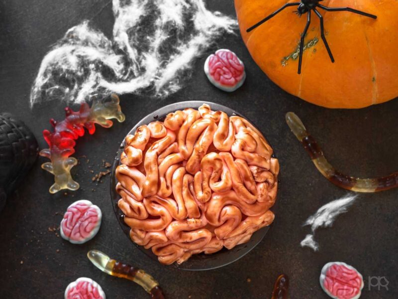 Esta tarta de “cerebro” es perfecta para Halloween y seguro que causa impresión en la mesa. Con su aspecto tan realista, parece sacada de una película de terror, ¡pero es deliciosa! Un postre ideal para adultos que buscan un toque divertido y macabro.