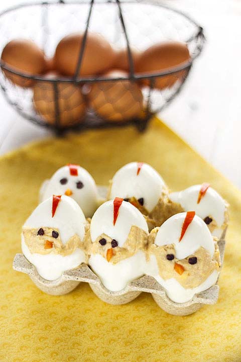 Y en la cena no olvidéis los huevos rellenos de Pascua ¿a que son divertidos? Te explicamos cómo hacerlos aquí: