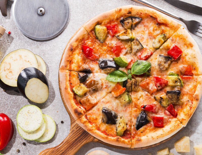 Pizza vegetal con calabacín y berenjena